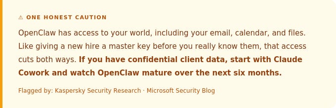 Now, and this part matters for professionals, there is a safer and plug-and-play version of this idea built by Anthropic, the company behind Claude. It is called Claude Cowork. If OpenClaw is the custom race car that needs a mechanic, Cowork is the luxury sedan that comes fully serviced. Less raw power, far less risk, and ready to drive off the lot today.