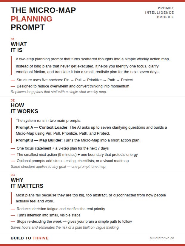 And one turns AI into a weekly planning partner, helping you translate scattered thoughts into a focused seven day action map while avoiding the overwhelm of big, abstract plans.