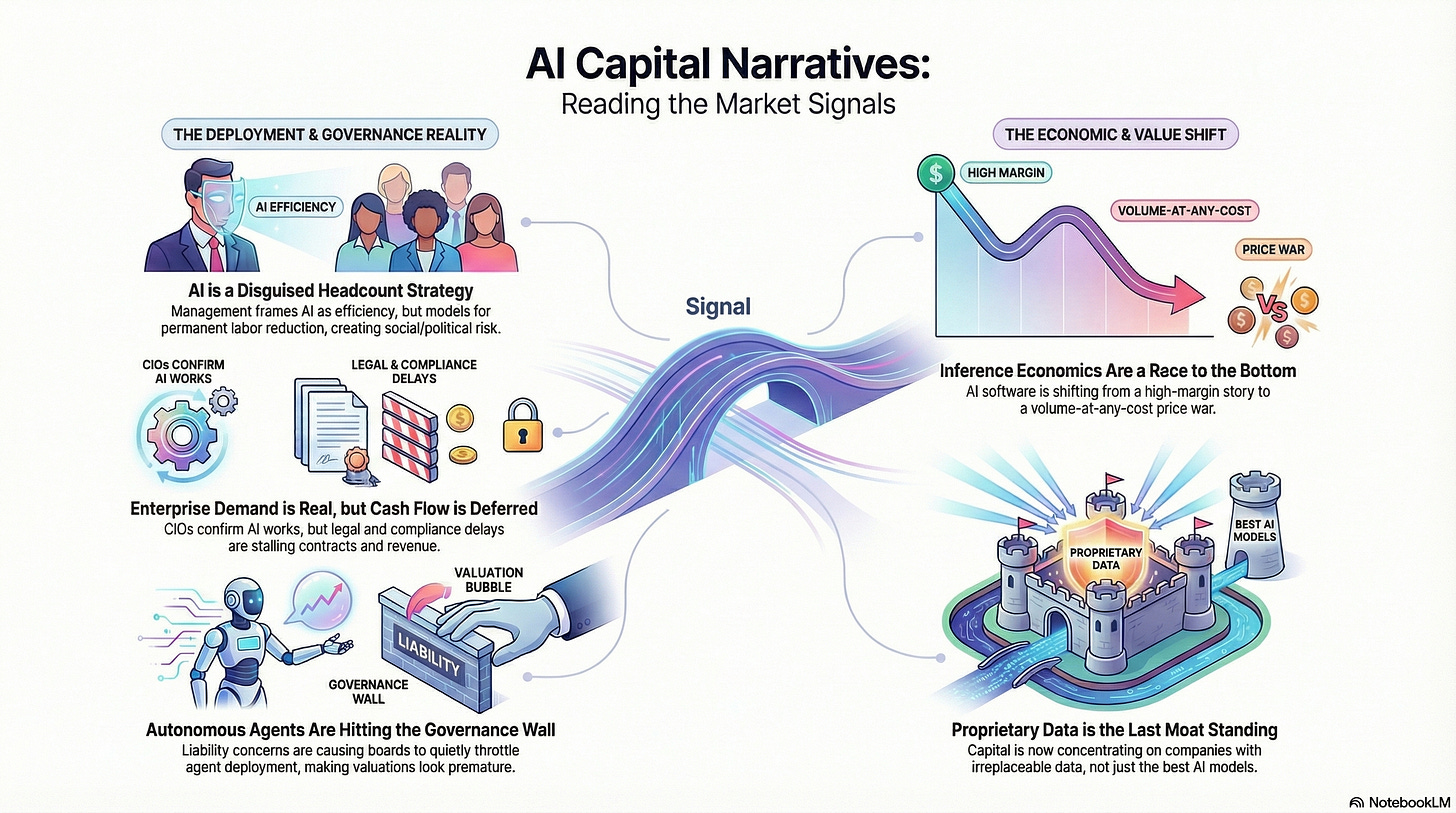 A concise snapshot of the AI narratives currently shaping how markets, media, and institutional investors are reframing risk, margins, and valuation