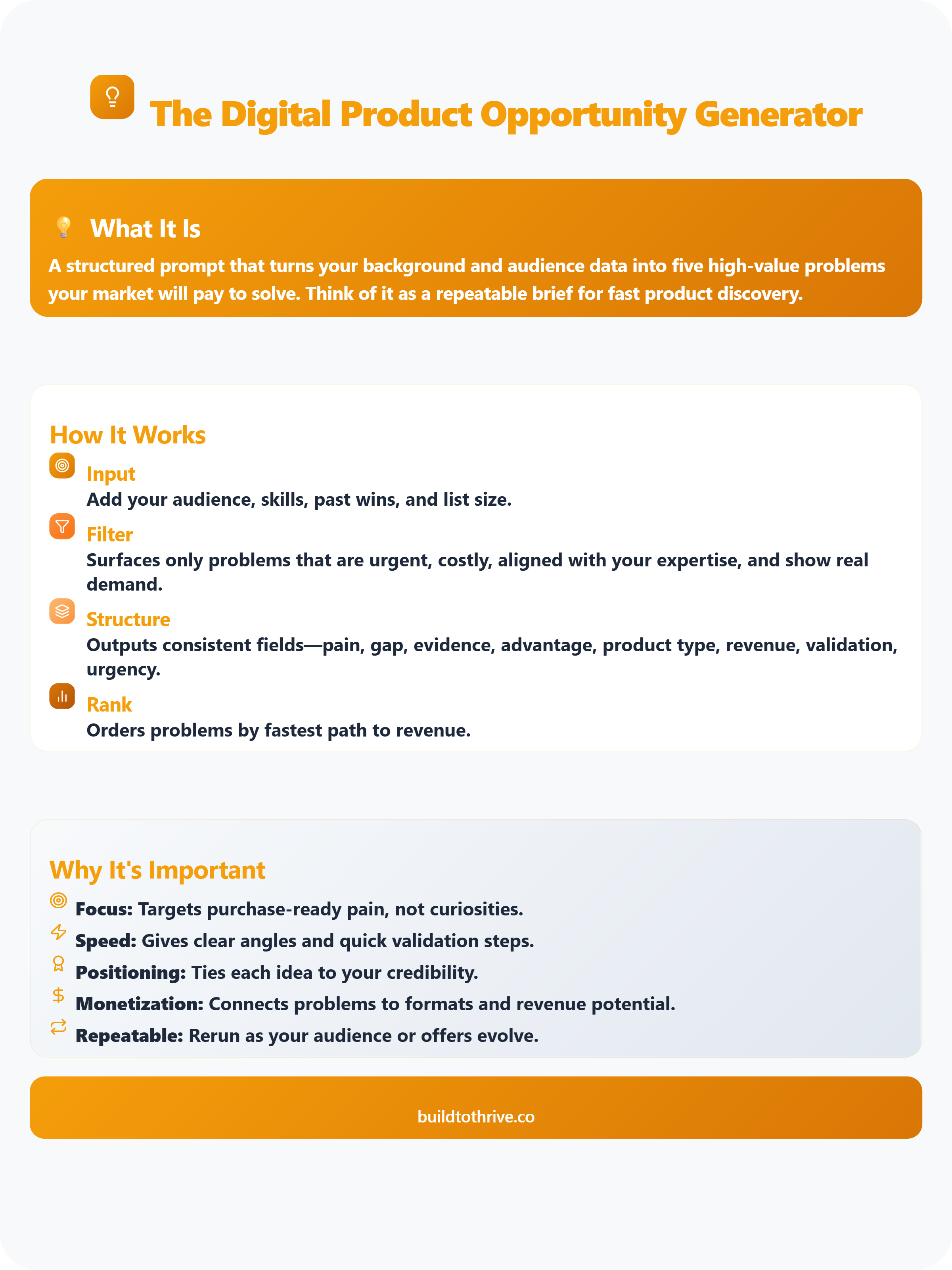 Practical takeaway: You don’t need to build tools. Just document your best prompt formula in one Google Doc. That becomes your reusable “micro-system” for future tasks.