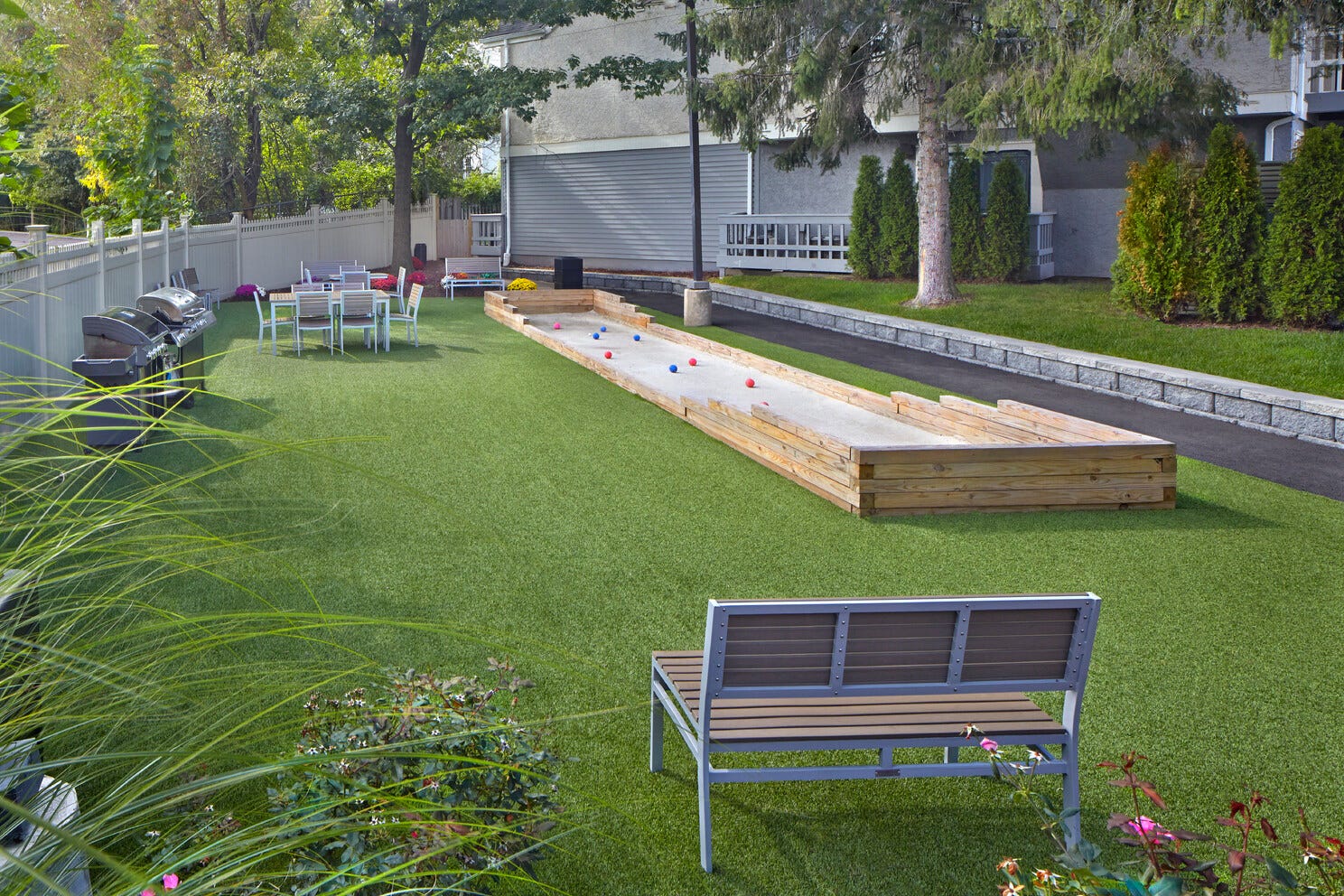 Creating a Serene Environment: To transform the industrial/commercial surroundings, we planted abundant pine trees and installed a 6-foot picket fence around the property, added a BBQ area, a bocce court and created a few gathering nooks closer to units/rooms. This not only enhanced privacy but also created a tranquil, residential atmosphere that appealed to our guests.