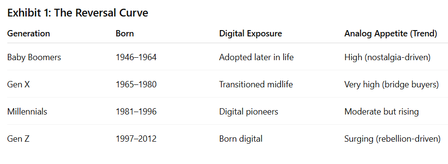 The fastest-growing demand for analog experiences is coming from Gen Z and younger Millennials — the most digital generations in history. They’ve turned nostalgia into rebellion and friction into luxury.