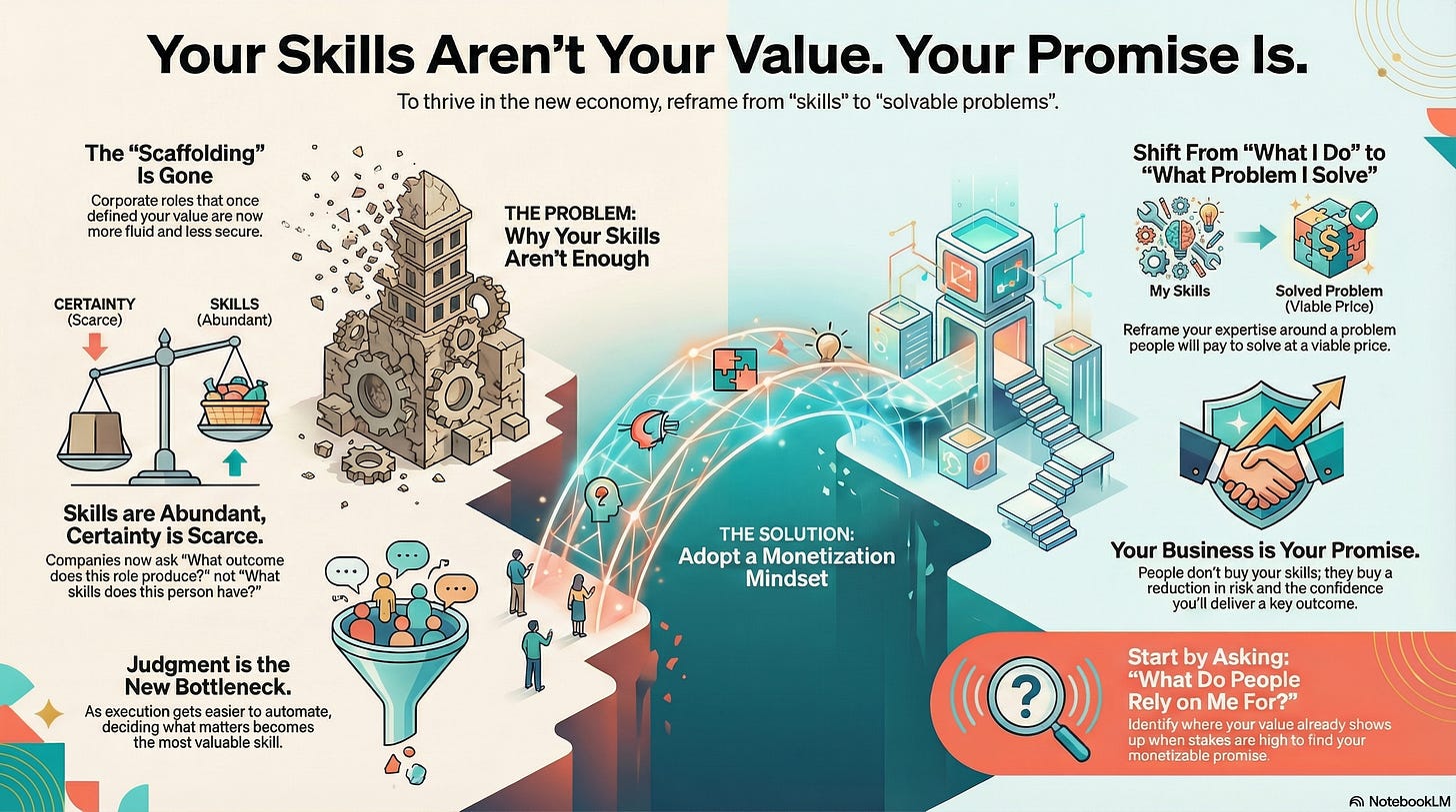 Which is why having an independent monetization mindset often comes down to shifting from what I know how to do, to what problem I can solve in a way people will pay for at a price and scale that actually works.